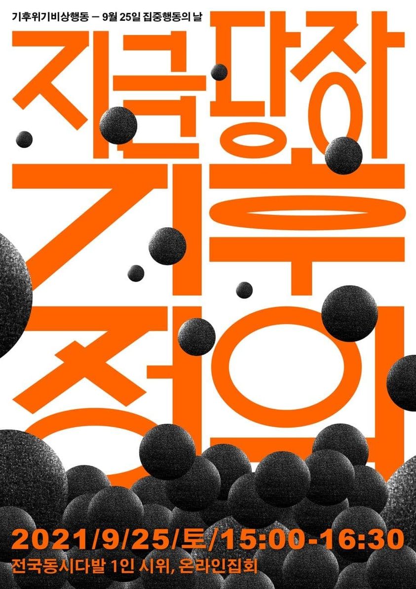 2021년 9월, 전 세계에서 기후위기를 막기 위한 행동이 진행됩니다. 날로 가속되는 기후재난 속에, 대한민국 정부와 국회, 기업들은 여전히 "예전 그대로(Business as Usual)"을 고수하고 있습니다. 기후위기의 책임자들의 이익을 대변하는 법과 정책이 만들어지는 것을 보고만 있을 수 없습니다. 기후위기비상행동은 9월 25일, 전국 각지에서 대규모 1인시위를 진행합니다.