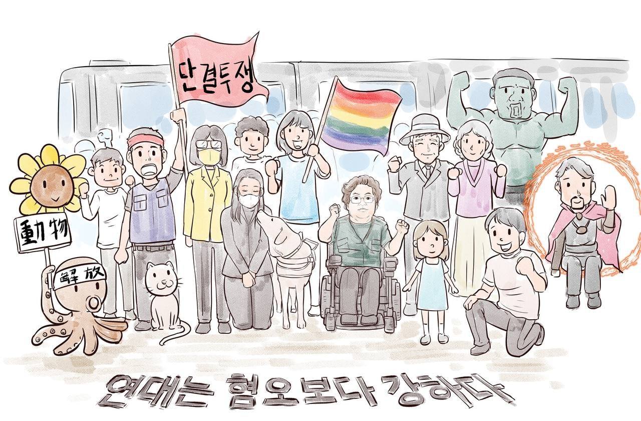 욕을 먹고 혐오를 받고 차별을 받고 협박과 폭력적 위협을 온라인 오프라인에서 받는 만큼 전장연을 지지하고 연대하는 온라인 오프라인에서의 뜨거운 마음을 확인한다. 그 마음을 알기에 다시 추스리고 아침에 일어나 출근하고 거리에 나서서 투쟁하고 업무를 하고 조직을 하고 활동을 한다. 일상이 좀 더 급진적이 되긴 하였지만, 내 일상이 멈추지 않는다. 그렇다. 그럼에도 나는 괜찮다.