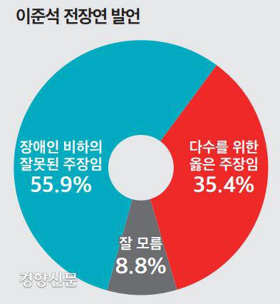 내가 이걸 처음 봤을 때 느낌은 생각보다 내가 체험하는 것보다 이준석의 의견에 사람들이 동조하지 않는구나 하는 생각이었다. 이준석이 전장연에 직접 못된 말을 SNS에 쏟아 놓기 이전에도 지하철 타기를 할 때마다 현장에서든 온라인에서든 온갖 혐오와 욕설을 들어야 했다.