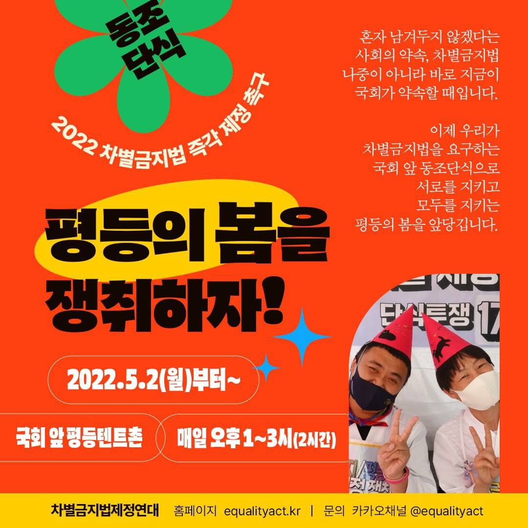 * 차별금지법(평등법) 제정을 위한 동조단식 https://bit.ly/equality-together