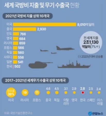 (* 아래 그림을 보자. 이처럼 세계 국방비 지출과 무기수출 상위 10개국 중에서도 가장 압도적인 3개 나라에게 압박당하는 사람들의 심정은 어떨까 누구도 상상해 보지 않는다. ‘내편’이 아니니까.)