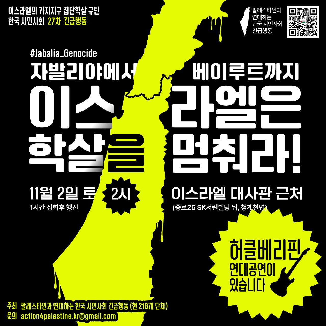 세계가 외면하고 침묵하고 있는 동안 이스라엘은 물, 전기, 통신, 의료 지원, 기자의 취재... 모든 것을 차단하고 가자 북부에서 보름이 넘게 조직적 학살을 벌이고 있다. 무차별적인 폭격 속에서 모든 병원은 폐쇄됐고, 구조대는 출입이 금지됐고, 기자들은 총격을 받았다. 탱크가 마지막 정리를 위해 진입했다. 이런 증언들이 이어지고 있다.