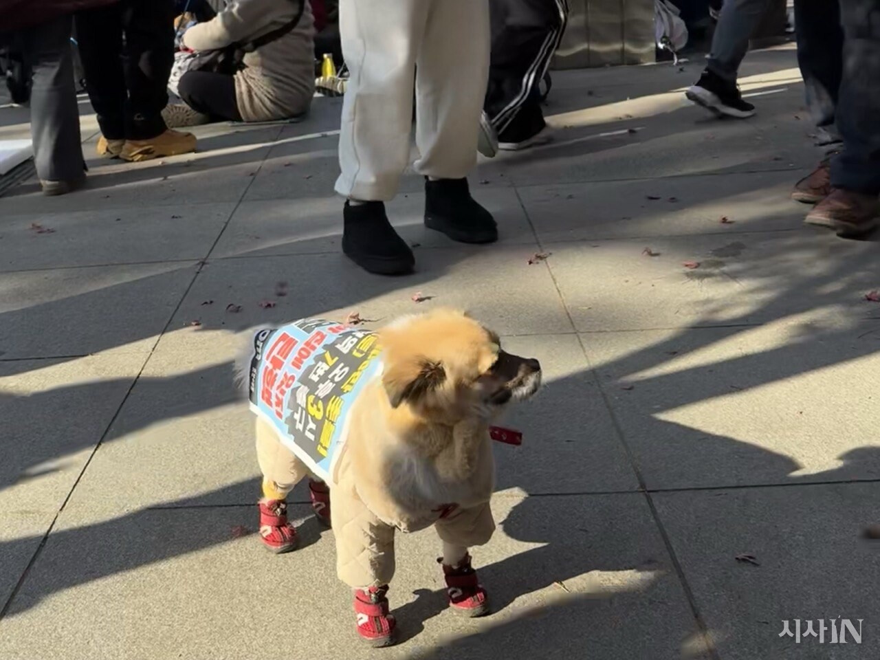 보호자에게 줄로 묶여 있어 도망치지도 못한다. 불꽃놀이가 개에게 트라우마를 남기고 개를 잃어버리는 일이 많은 것처럼, 집회도 개에게 정말 위험하다. 부디 개를 잠깐 맡기고 광장에서 쾌적하게 만나면 좋겠다. 우리에게는 동물의 안위도 중요하니까.