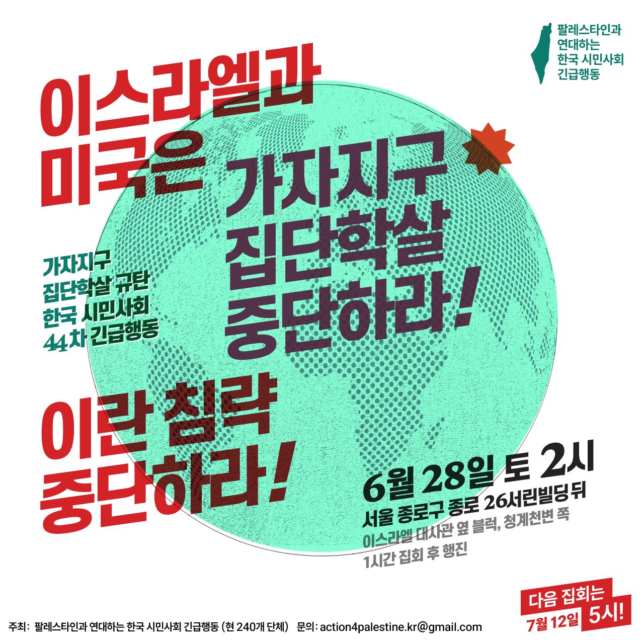 10. 한국 족벌언론들은 신나서 스포츠중계하듯이 이스라엘과 미국의 승리를 응원하고 있지만, 지금 필요한 것은 중동전쟁뿐 아니라 무시무시한 3차대전의 불을 당기고 있는 두 나라에 대한 규탄, 특히 이스라엘에 대한 경제적 외교적 제재, 무기 금수뿐 아니라 모든 교류의 중단이다.