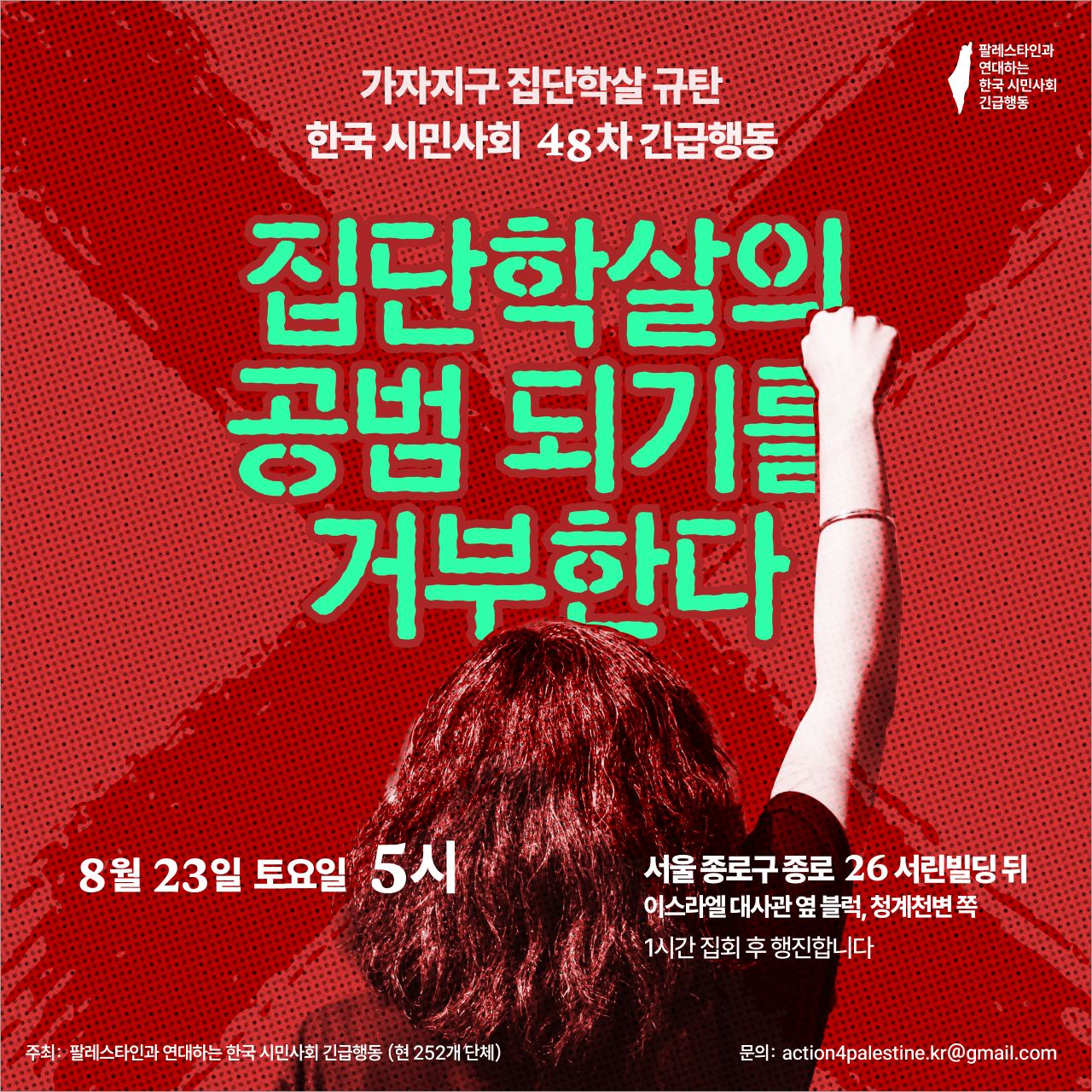 * '어쨌든 하마스의 10.7 작전 때문에 이렇게 된 것'이라는 논리를 거부한다. 집단학살의 책임은 전적으로 이스라엘에 있다.