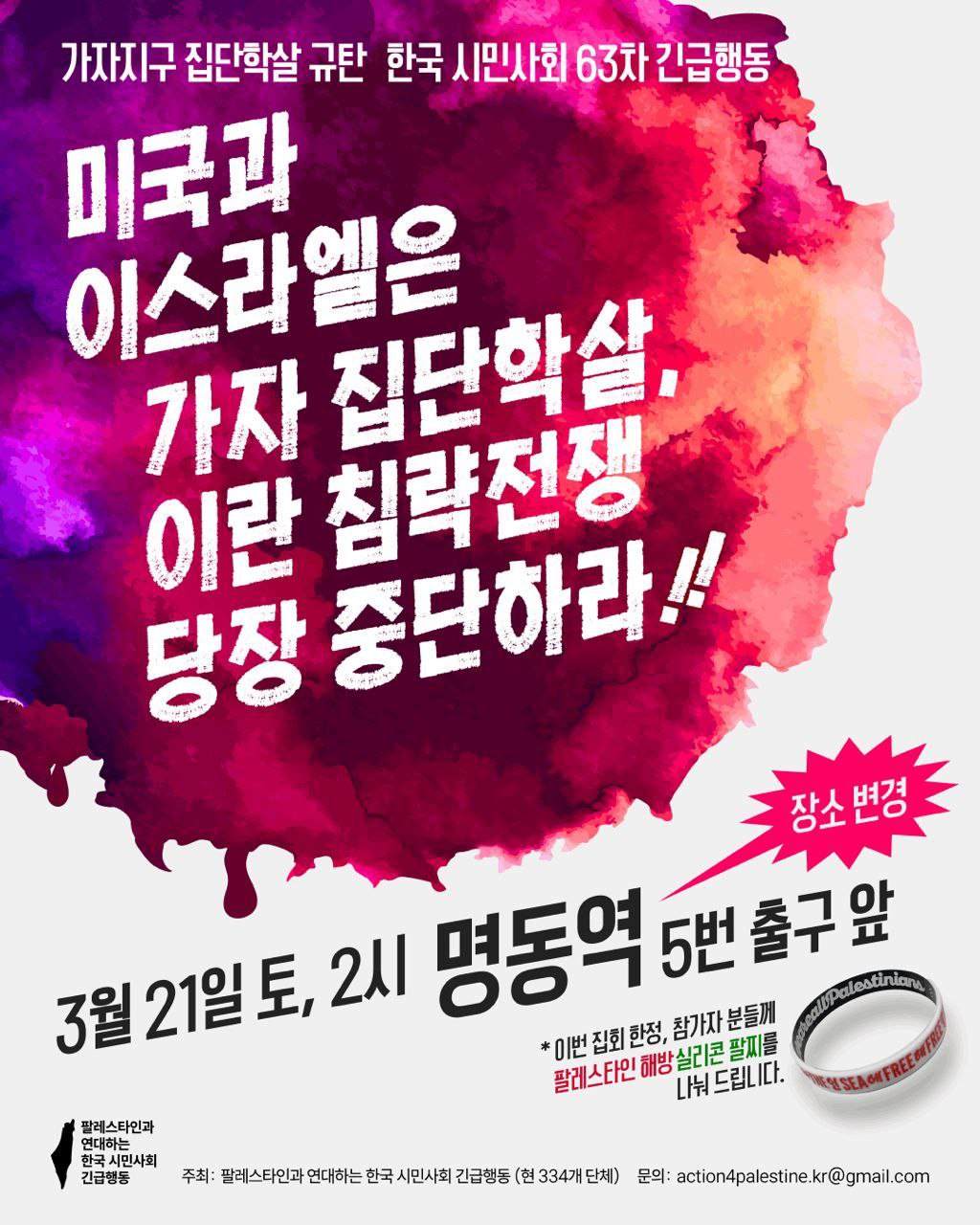 이 침략과 학살에 절대 도움을 줘서는 안 된다. 우리는 트럼프와 네타냐후의 더러운 뒤를 닦아주는 똘마니가 아니기 때문이다.