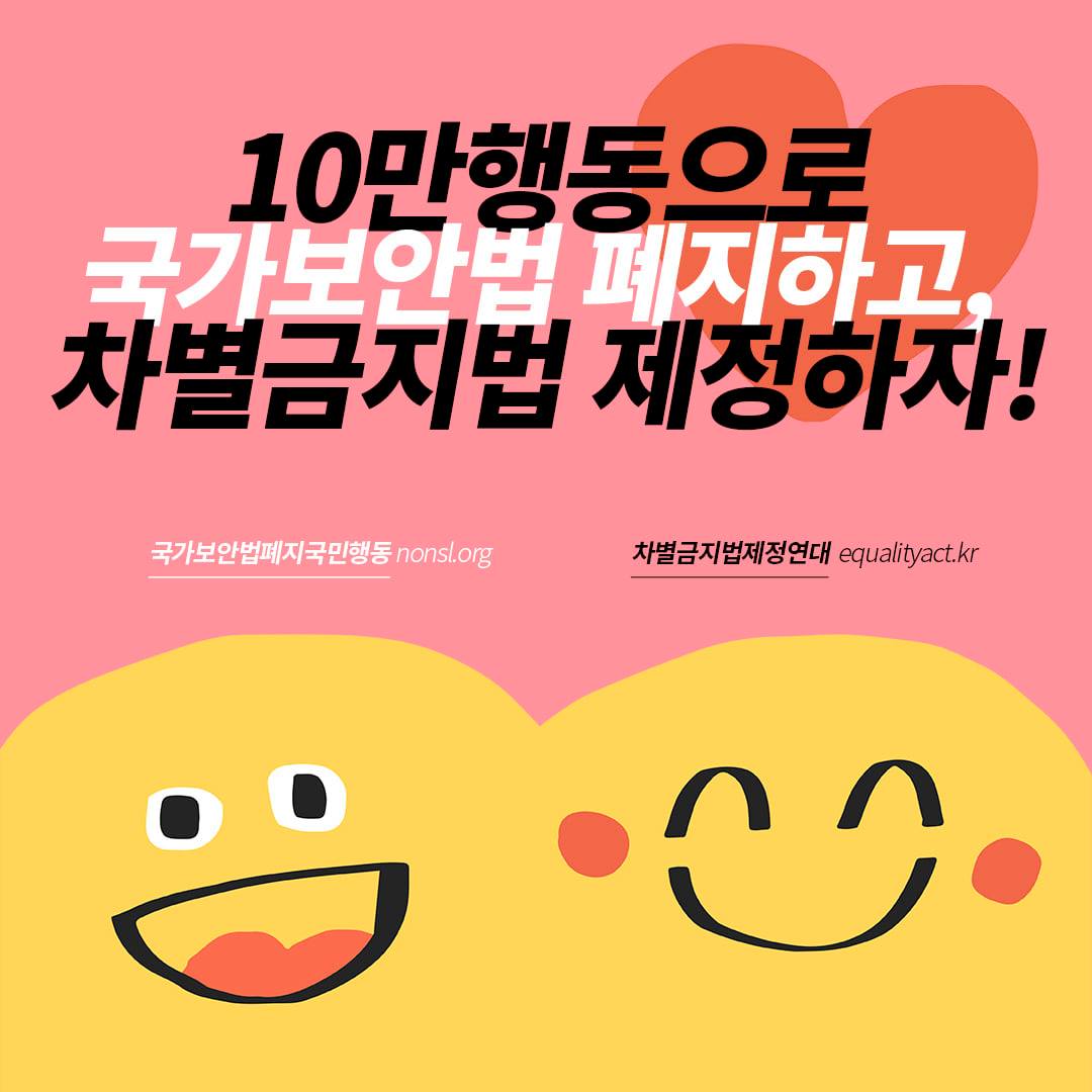 차별과 혐오없는 세상을 만들기 위해서 가장 없어져야 할 것이 국가보안법이고 가장 필요한 것은 차별금지법이다. 당장 중요한 것은 국가보안법 폐지 10만 청원을 성공적으로 마무리하고, 25일부터 시작될 차별금지법 제정 10만 청원으로 그 성공을 이어가는 것이다. 이번에는 반드시 끝까지 함께 손을 잡고 이뤄낼 수 있기를 간절히 기대한다.