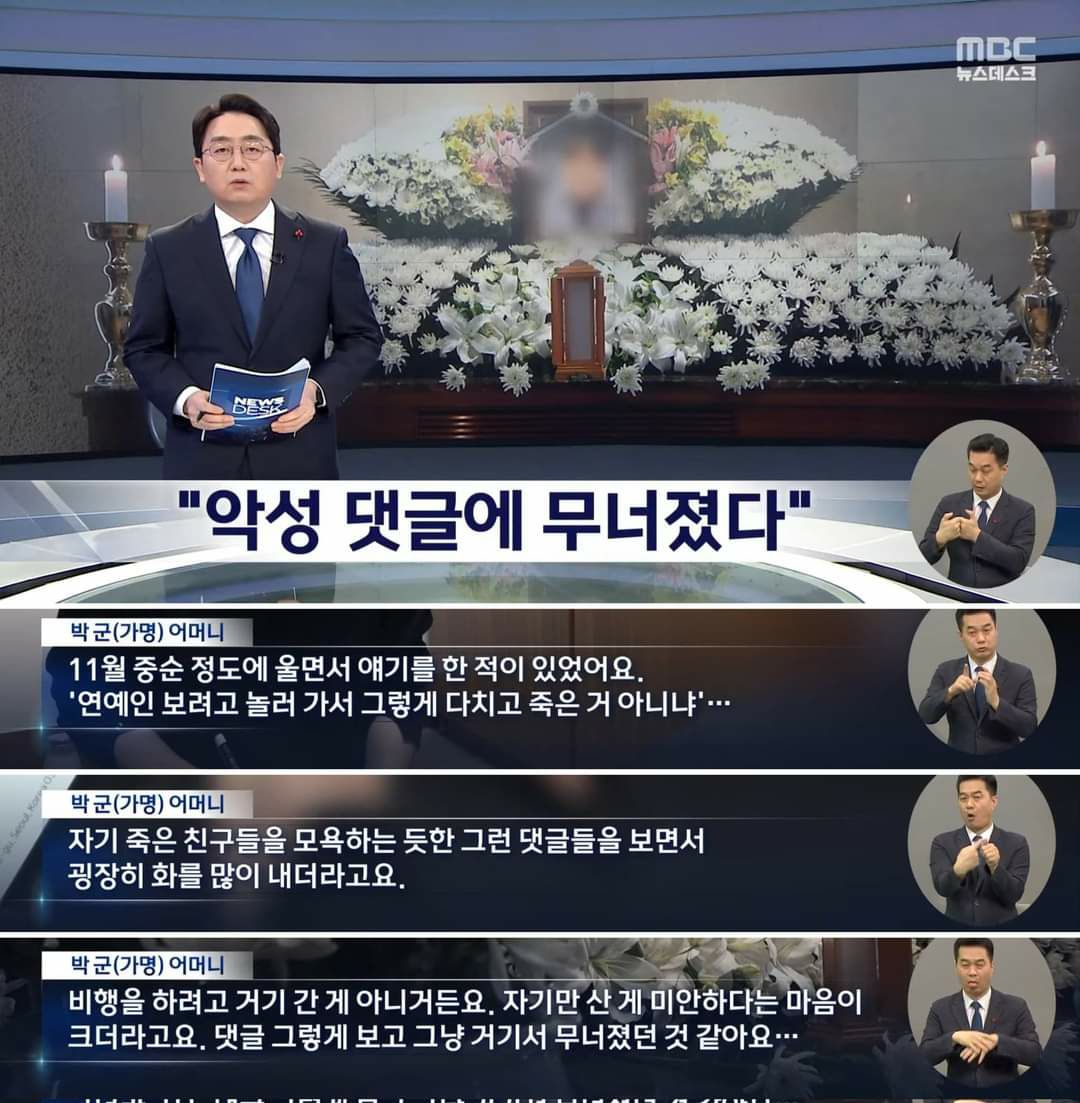희생자의 언니: ‘검사가 처음에는 부검없이는 시신을 가져갈 수 없다고 했다. 우리 집은 서울인데 강원도 경찰이 담당이라면서 찾아왔다. 권력과 명예를 잃을까봐 두려워하는 이들에게 손바닥으로 하늘을 절대 가릴 수 없고 진실은 결국 발혀지게 돼 있다고 말해주고 싶다. 내가 고2때 수학여행을 앞두고 세월호 참사가 일어났는데 이번이 제발 마지막이어야하고, 대한민국이 안전한 나라가 되기까지 이런 희생이 있었다고 기록되길 바란다. 월드컵 중에도 잊지 않아주신 분들에게 감사드린다.’ https://www.youtube.com/watch?v=MSiMIs6g90E&list=PLqCB8pKLc7sx_B0heeke76EmCCoCCIntW&index=1