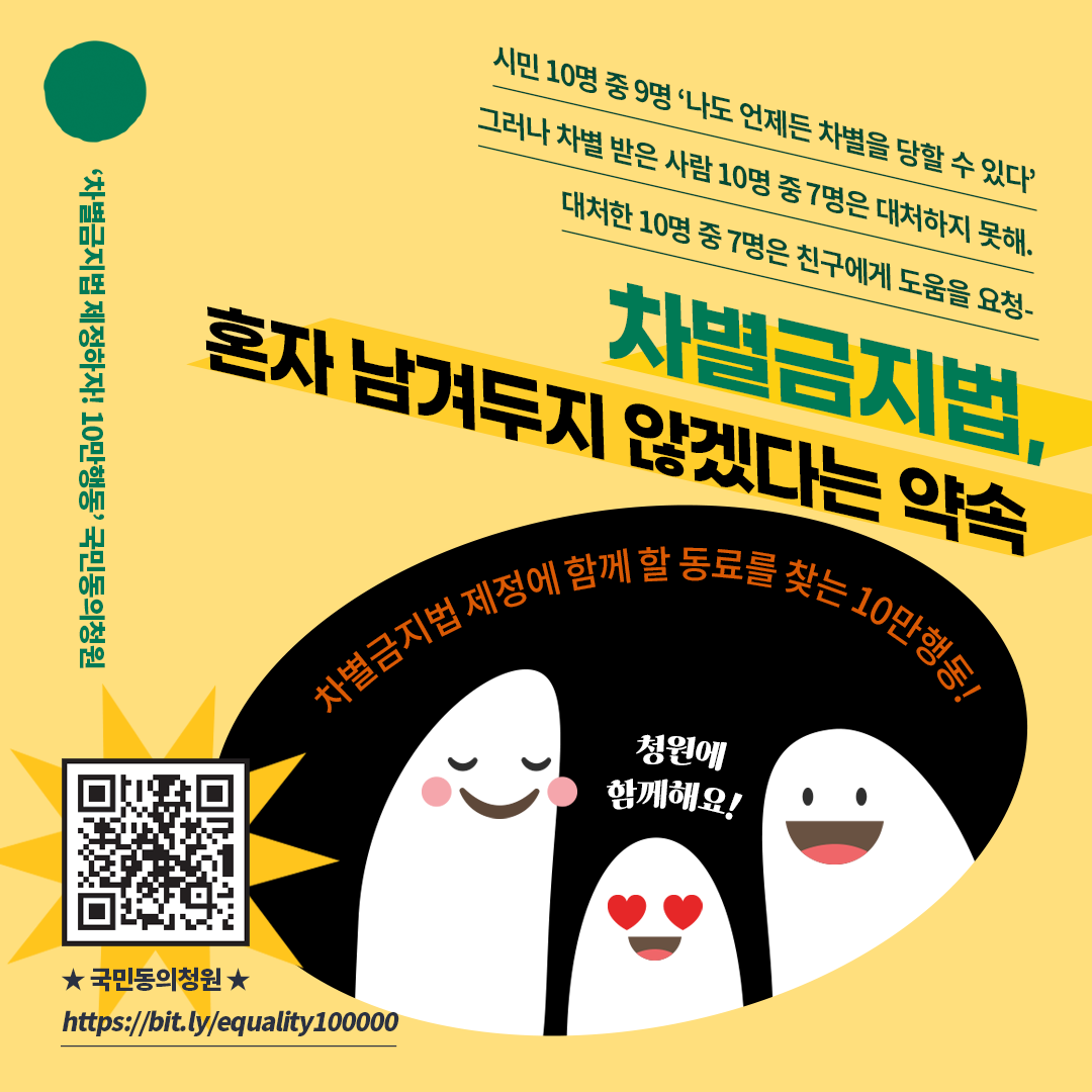 📌 차별금지법 제정 국민동의청원 https://bit.ly/equality100000